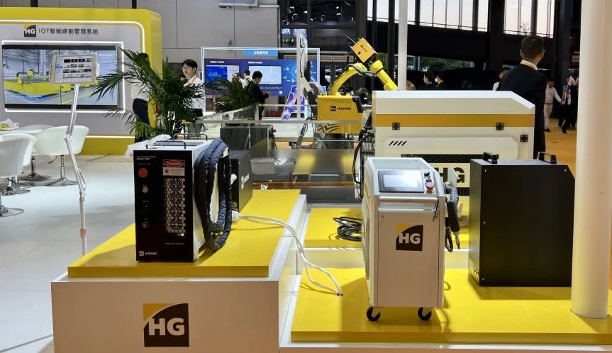 HUGONG免示教机器人工作站,具备寻位纠偏、实时跟踪、先扫后焊三种模式,可自主决策焊接。展会现场展示了激光跟踪定位技术,精确定位焊接轨迹,自动清理焊渣,提升了焊接的精度和美观性,让机器智造更加智能化!高性能、高稳定性、高可靠性的设计理念,满足不同行业需求,为其提供个性化定制的机器人解决方案。