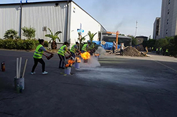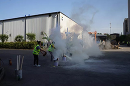 员工操作灭火器灭火